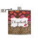 Tache Girly d'impression de peau de léopard avec des baisers de lèvres dans différentes nuances de rouge, de rose, de pourpre, d'orange et de jaune avec un arrière - plan de cuir de brun foncé. Préparez pour personnaliser et ajouter n'importe quel nom. Changez juste Elizabeth en votre nom. Entièrement personnalisable. Très chic et élégant.
