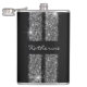 Faux argent foncé brillant parties scintillant effet rayures de course sur un flacon personnalisé avec texte de nom imprimé personnalisé sur un côté.
