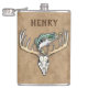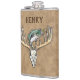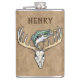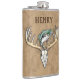 Basse de saut Grande Rack Cerf Crâne Boire Flacon. Ajoutez simplement votre nom ou celui des destinataires pour le personnaliser ! C'est le cadeau parfait pour le chasseur et le pêcheur ! Cette conception de crâne de cerf de sonnette a été dessinée à la main et l'eau colorée par ©Tina Hesskew de Fishing Hunting Life.