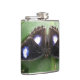 Cette magnifique fiole présente une photo d'un beau papillon tropical. Cette espèce est principalement noire avec de belles taches bleues irisées sur chaque aile. La photo a été prise en utilisant la macro photographie pour un résultat étonnamment détaillé.