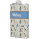 This lovely flask features an avian pattern of kingfishers, robins, blue jays, woodpeckers, nests with eggs, and more. Great way to stay hydrated while listening to birdsong or gift for the nature lover or birder in your life. Your or your recipient's name appears in a cream color against a color block of robin's egg blue.