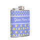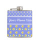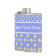 Un Hip Flask élégant pour vous personnaliser, avec de jolis motifs mixs'n'match de pois blancs sur le bleu violet et un motif mini-imprimé de primroses jaunes et de pois blancs, également sur le bleu violet. Une partie de la collection Posh & Painterly "Primroses".