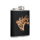 Cette unique "une des sortes" de flacon de wapitis ! Il est doté d'une majestueuse silhouette en bois d'Elk Bull sur un Arrière - plan en cuir noir! C'est un Art Design original de l'artiste Kerry Miller.