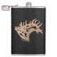 Cette unique "une des sortes" de flacon de wapitis ! Il est doté d'une lunette en cuir noir bouillonnant en cuivre sur un Arrière - plan en cuir noir! C'est un Art Design original de l'artiste Kerry Miller.