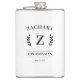 Cette élégante flasque pour garçon d'honneur présente une couronne de laurier traditionnelle entourant l'initiale du garçon d'honneur, complétée par leur nom, titre et date dans une typographie décorative noire élégante. Pour personnaliser, entrez simplement les noms des garçons d'honneur, leurs titres et la date dans la section prévue à cet effet pour créer votre propre cadeau unique pour votre cortège de mariage. Bien que présentée comme une flasque pour garçon d'honneur, cette conception classique est facilement adaptable pour le marié, le témoin, le père du marié et le père de la mariée, ce qui en fait un excellent cadeau personnalisé pour votre cortège de mariage.