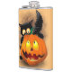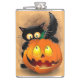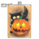 Flasques Chat Fun Halloween Caractère mordant un Citrouille