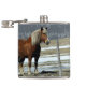 Cheval Belge À Paddock, Poser Un Flacon. Art numérique. Un cheval belge en paddock d'hiver derrière une clôture de barbelés. S'intègre bien dans la décoration de ferme ou de ranch. Personnalisable .