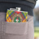 badge de crête Buchanan entouré d'une courroie et boucle sur l'arrière - plan tartan clan. Texte personnalisé.