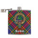 Clan MacBeth badge de crête entouré d'une sangle et boucle sur l'arrière - plan tartan. Texte personnalisé.
