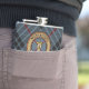 Clan MacKay badge crête entouré d'une sangle et boucle sur le tartan bleu. Texte personnalisé.