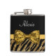 Flasques Classy Gold Zebra Print FAUX Glitz Bow avec nom