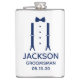 Ce flacon de 8 oz est idéal pour les garçons d'honneur. Si tout votre cortège de mariage porte des costumes, ce design avec des bretelles et un nœud papillon bleu serait parfait. Décontracté mais élégant. C'est idéal pour un week-end de célibataire ou une soirée d'enterrement de vie de garçon. Un cadeau amusant pour de bons moments. Procurez-en un pour tout le monde dans le cortège de la mariée - ils adoreront ! Le titre peut être changé en marié, témoin, placeur, etc.