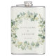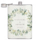 Un flacon hip élégant et personnalisé pour les célébrations de mariage / cadeaux / souvenirs. Avec des baies de neige et de l'eucalyptus peints à la main disposés dans une belle couronne botanique. Tout le texte est entièrement modifiable afin que vous puissiez facilement modifier le message et changer le style / couleur / taille / placement de la police. Articles de coordination disponibles dans ma boutique.