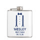 Ce flacon est parfait pour le meilleur homme. Si toutes vos fêtes de mariage porteront des costumes ce design avec des bretelles et une cravate arc en bleu serait parfait. Décontracté mais formel. Ce serait parfait pour un week-end de baccalauréat ou une fête de baccalauréat. Un cadeau amusant pour un grand moment. Obtenez-en un pour tout le monde à la fête de la mariée. Le titre peut être changé pour groom, groomsman, huissier, etc.