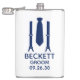 Ce flacon est parfait pour le marié. Si tout votre cortège de mariage portera des costumes, ce design avec des bretelles et une cravate bleue serait parfait pour eux tous. Décontracté mais élégant. Ils seraient parfaits pour un enterrement de vie de garçon ou un week-end. Le titre peut être changé en meilleur ami, garçon d'honneur, ouvreur, etc.
