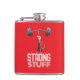 Un haltérophile meerkat amusant sur un flacon vinyle. Utilisez "Personnalisez ce modèle" pour modifier le texte "FORT STUFF" et créer un cadeau unique et customisé. Un accessoire pour quelqu'un qui aime un coup de feu ou un tot de quelque chose de puissant, avec un dessin mignon d'un meerkat maigre en gros shorts, souriant alors qu'il lève sans effort une énorme cloche avec un doigt. Pour les amateurs d'alcool, d'haltérophilie, de suricates et/ou d'entraînement.