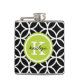 Flasques Diamants géométriques noirs et verts Monogramme pe