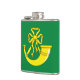 Flacon vinyle avec design avec un drapeau du comté historique de Huntingdon, en Angleterre, Grande-Bretagne; drapeau vert avec une corne de chasse à ruban or