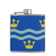 Flacon enveloppé de vinyle avec design avec un drapeau du comté historique de Cambridgeshire, en Angleterre, Grande-Bretagne; drapeau bleu avec trois couronnes dorées et deux vagues
