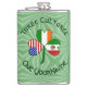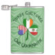 Une grande fiole personnalisée montre un shamrock avec un drapeau différent dans chaque feuille représentant les cultures mexicaine, irlandaise et américaine d'Amérique. Ci-dessus, les mots TROIS CULTURES. Ci-dessous, UN DE VOTRE NOM. Ajoutez votre nom en lettres vertes, ou celui de quelqu'un d'autre, à l'endroit approprié, pour créer un objet ou un cadeau personnalisé. Rendez-vous à la St Patrick's Day, Cinco de Mayo, et les événements du 5 juillet, ainsi que des réunions de famille.