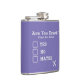 Drunk Test Funny Booze Whiskey Flask. Un cadeau personnalisé pour les chasseurs, les pêcheurs ou quiconque aime le motif camo. Idéal pour les anniversaires, la retraite, les voyages de chasse ou de camping à l'extérieur, la retraite de jour de st. patrick ou tout autre jour de l'année. Les favoris de l'armée militaire. Accueil > Cuisine et restauration > Outils Barres et Barres > Flacons. Flacon d'ébullition du pied. Cadeaux personnalisés. Flacon de whisky écossais irlandais personnalisé. Flacons d'alcool - Économisez sur les flacons d'alcool