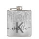 Un fond d'aspect argenté avec des gouttes de paillettes factices, aspect peinture qui coule. Personnalisez et ajoutez un nom et une lettre de monogramme. Le nom est écrit en noir avec un style d'écriture manuscrite moderne, gras et grand avec des fioritures. Pour conserver les fioritures, supprimez simplement le nom de l'exemple, laissez les espaces ou les émojis devant et après le nom.