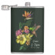 Elégant flacons tropicaux mariages personnalisés avec une belle illustration peinte à la main d'un colibri et un bouquet de fleurs exotiques tropicales comme Bird of Paradise. La typographie moderne peut être facilement customisée avec les détails de votre mariage. Le cadeau idéal pour un mariage d'été, un mariage tropical ou une douche nuptiale.