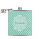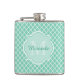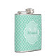Ajoutez une ambiance moderne et sophistiquée à votre style personnel avec ce motif de quatrefoil vert menthe et blanc 6 oz. flacon avec un élégant monogramme encadré. Personnalisez ce design élégant en ajoutant votre nom et votre initiale monogrammée.