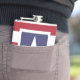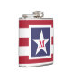 Un monogramme patriotique, personnalisable. Ce design est basé sur le drapeau américain des étoiles et rayures. L'arrière - plan est à rayures bleu et blanc. Au centre se trouve un carré bleu avec une seule étoile blanche. Le monogramme peut être modifié au texte de votre choix ou supprimé entièrement. Si vous désirez obtenir de l'aide ou des modifications, veuillez me contacter par l'intermédiaire de mon magasin zazzle ou de mon site www.tiki.graphics