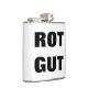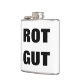 Un flacon étiquette évident dit ROT GUT dans de grandes lettres simples, simples et faciles à lire pour ne jamais confondre votre flacon de boisson douce aromatisé aux fruits avec votre alcool. (Ces boissons gazeuses sucrées vous tueront!) Excellent moyen de transporter votre hooche à haute octane autour de vous.