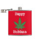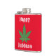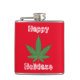 Feuilles de mauvaises herbes Noël Joyeux flacon de vacances. cadeau de Noël cool grande feuille de mauvaises herbes vertes sur arrière - plan rouge avec un texte blanc trempé qui dit, "Joyeuse fête." Cadeau cool pour hanche personne.