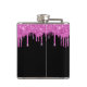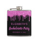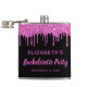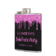 Flasque personnalisée girly et amusante pour votre enterrement de vie de jeune fille avec des paillettes roses chaudes scintillantes dégoulinant sur un fond noir et "Bachelorette Party" dans un script rose chaud. Vous pouvez personnaliser davantage avec votre nom et la date de la fête.
