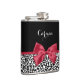 Personnalisez en ajoutant le nom d'une fille à cet empreinte de léopard blanc et noir ceint 6 oz. flacon avec un joli ruban rouge vif attaché dans un arc élégant. Ce design poster de animal à la mode est une image imprimée à plat, et ne contient pas de ruban réel.