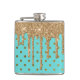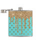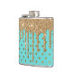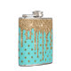 Flacon de boisson glacée, avec des graphiques de la peinture de l'or scintillant vers le bas un arrière - plan de pois de polka turquoise et or. Customisez d'ajouter votre propre texte. Idée cadeau pour les mariages, anniversaires et autres occasions spéciales.