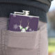 Profitez de vos boissons alcoolisées préférées pendant la saison des fêtes avec un flacon au vinyle de renne violet enveloppé. Le design des flacons comprend un renne festif portant une couronne de Noël ornée de baies sèches et de flocons de neige en chute ainsi qu'une boîte de salutation décorée de guirlandes de vacances. Autres cadeaux et objets de vacances disponibles avec ce design aussi.