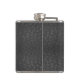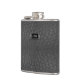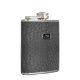 Joli flacon avec des graphismes d'un look de cuir d'autruche noire, avec une plaque d'apparence métallique, sur le devant. Personnalisez le monogramme de trois lettres, sur la plaque, pour répondre à vos besoins. Idée cadeau idéal pour n'importe quel type et surtout grand comme un cadeau de mariage pour les groomsmen.