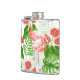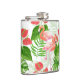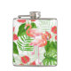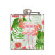 Aquarelle design motif avec des fleurs et des oiseaux flamands, la monstère et les feuilles de palmiers.