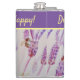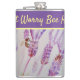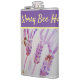 Lavender Flower Ne vous inquiétez pas Bee Happy Purple Hip Flask, avec un mot entièrement personnalisable. Conçu à partir de ma peinture d'aquarelle originale de jardin.