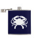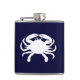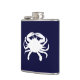 Forme de crabe blanc contre un bleu marine foncé. L'espèce est un crabe bleu.