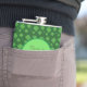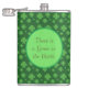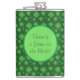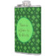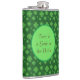 Texte drôle et quatre feuilles de trèfle vertes chanceuses sur un fond vert Flask. Texte Génie dans la bouteille peut être personnalisé.