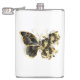 Or flower butterfly with black jewelry orchid, decorated with gold leaves on white background.