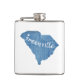 Si vous visitez Greenville, Caroline du Sud, n'oubliez pas de porter vos bottes de randonnée, chaussures de course, kayaks, canoës, vélos, clubs de golf, canne à pêche et panier de pique-nique... l'aventure vous attend ! Cet élégant design présente un grain de bois bleu arrière - plan des contours de l'état de la Caroline du Sud.