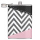 Flasques Gris Zigzag, Gris Chevron, Motif Zigzag, Rose