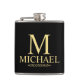 Cadeaux de Groomsman Personnalisés Black and Gold avec monogramme personnalisé, nom et titre de marionnettiste en or classique serif style de police sur arrière - plan noir. Aussi parfait pour Best Man, Père de la Mariée et plus. Remarque : Les détails du papier sont simulés dans l'illustration. Il n'y aura pas de métal sur ce produit.