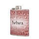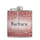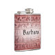 Un Hiéroglyphes égyptien antique personnalisé Flacon rouge avec des rangées d'hiéroglyphes anciens gravés sur pierre. Personnalisez-le avec votre nom ! Modifiez le texte "Barbara" à droite.