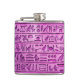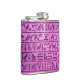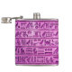 Un magnifique flacon de liqueur aux lignes d'hiéroglyphes antiques gravés sur pierre en violet.