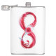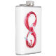 Infinity symbole of continuous stream of red pouring into glass glass glass on white background.
