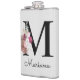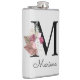 Flacon initial M brodé rose boho floral, cadeau idéal pour une soirée de célibataire ou autre célébration de filles amusante. Personnalisé avec la lettre M et un nom.