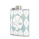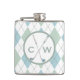 Flacon à boire sur le thème du golf fait dans un motif de Jacquard bleu pâle, vert et blanc. Un cercle, à l'avant, est décoré de deux clubs de golf traversés. Les initiales et les deuxièmes initiales de votre monogramme sont prêtes à être personnalisées.