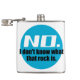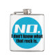 Cette fiole de hanche géologique présente un logo bleu avec le texte "Non. Je ne sais pas ce qu'est ce rocher." Pour ceux qui reçoivent trop de demandes de nom de roches mystérieuses.